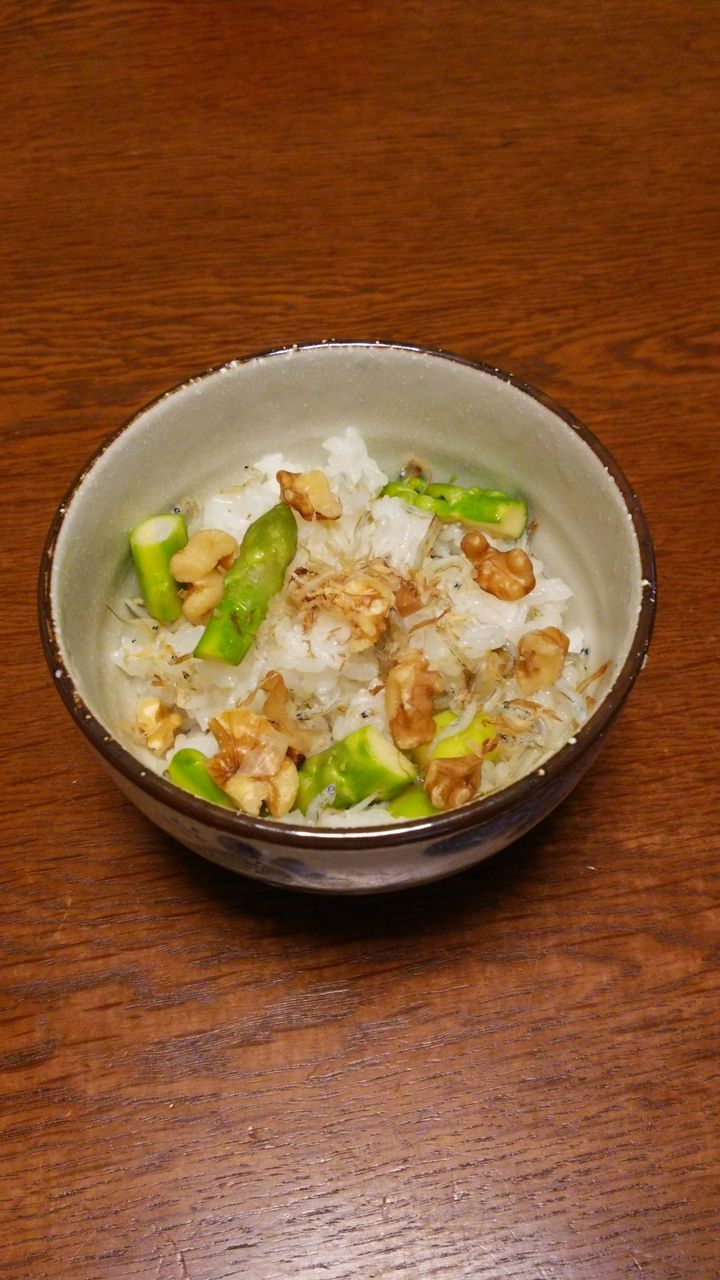 ほんのりと塩っ気のきいたじゃことアスパラガスとの味わいが