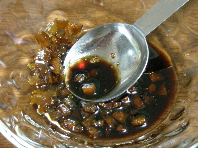 1、なつめをみじん切りにして、しょう油とごま油と混ぜれば