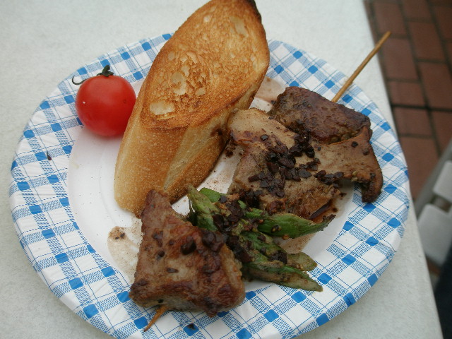 ダチョウの串焼き、小龍包、アイスパイン、アイスマンゴー、