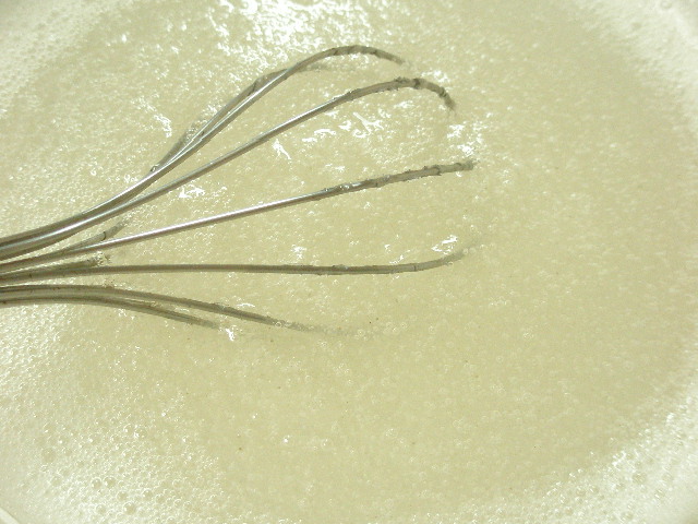5、「4.」に「1.」の水とたまごを混ぜた水酸化カルシウムを